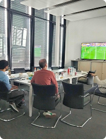 Since we’re in a crucial development phase and collaborate closely, we mainly work from the office, either in Munich or Delft.